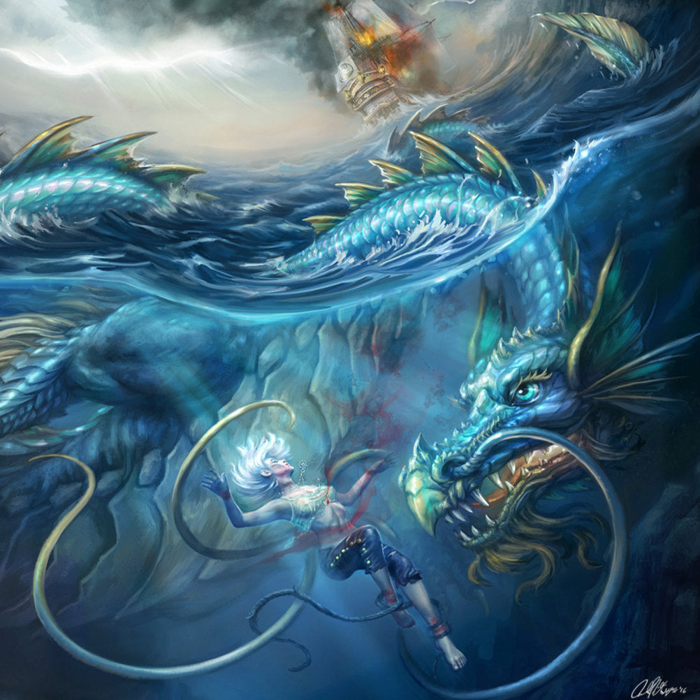 "Watery Grave" Fantasy Art Dragon Canvas Print