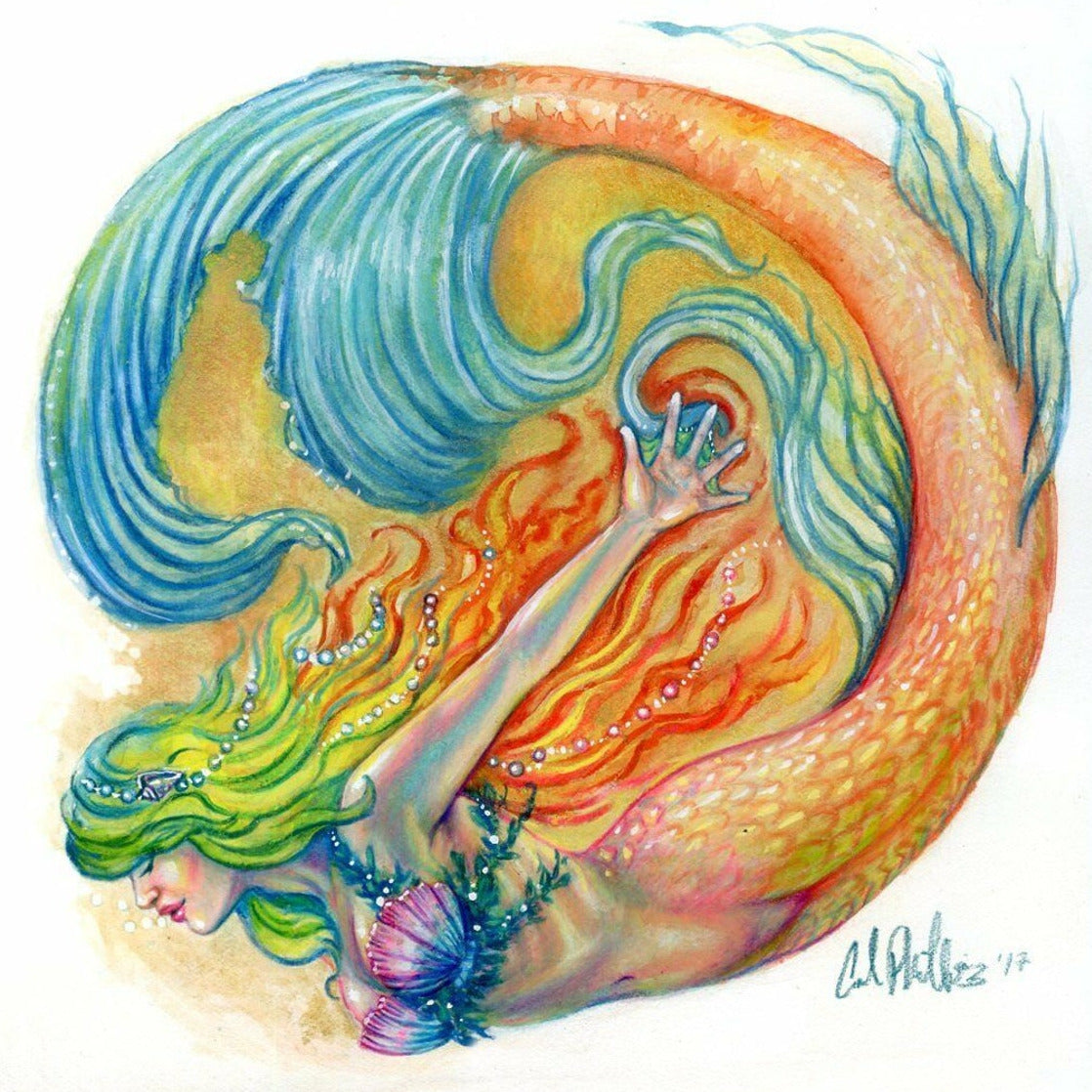 "Color Swirl Mermaid #1" Mermaid Art Print