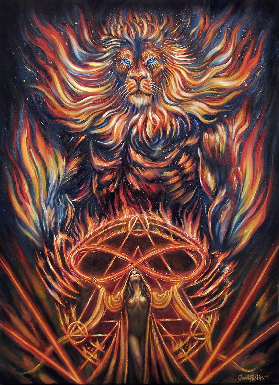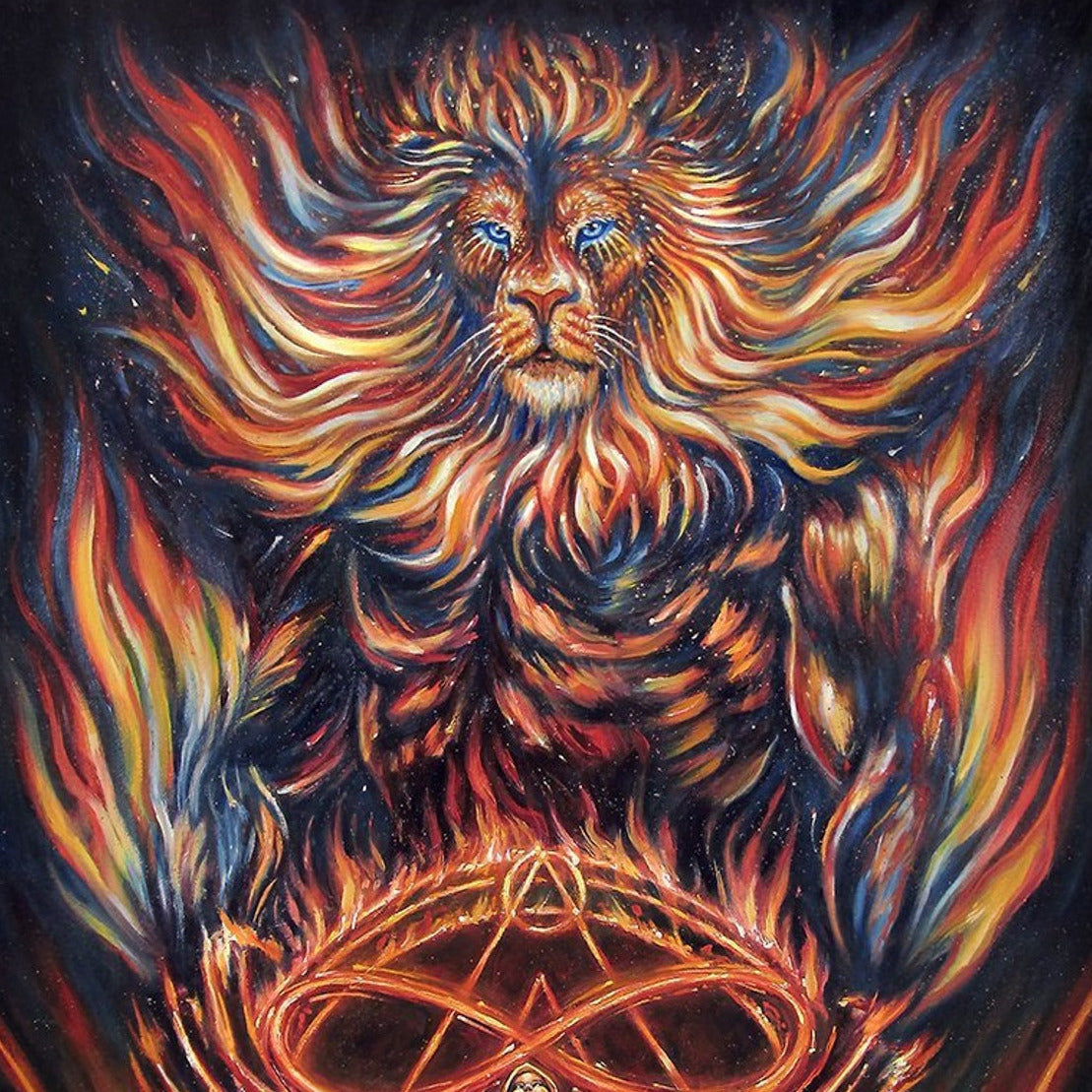 This painting is for the Leos! It was painted for 78 Tarot - Elemental Tarot Deck. It Represents the strength card, and its element, fire. This beautiful vibrant painting with a bold red & yellow color scheme features a majestic lion summoned by a powerful witch.