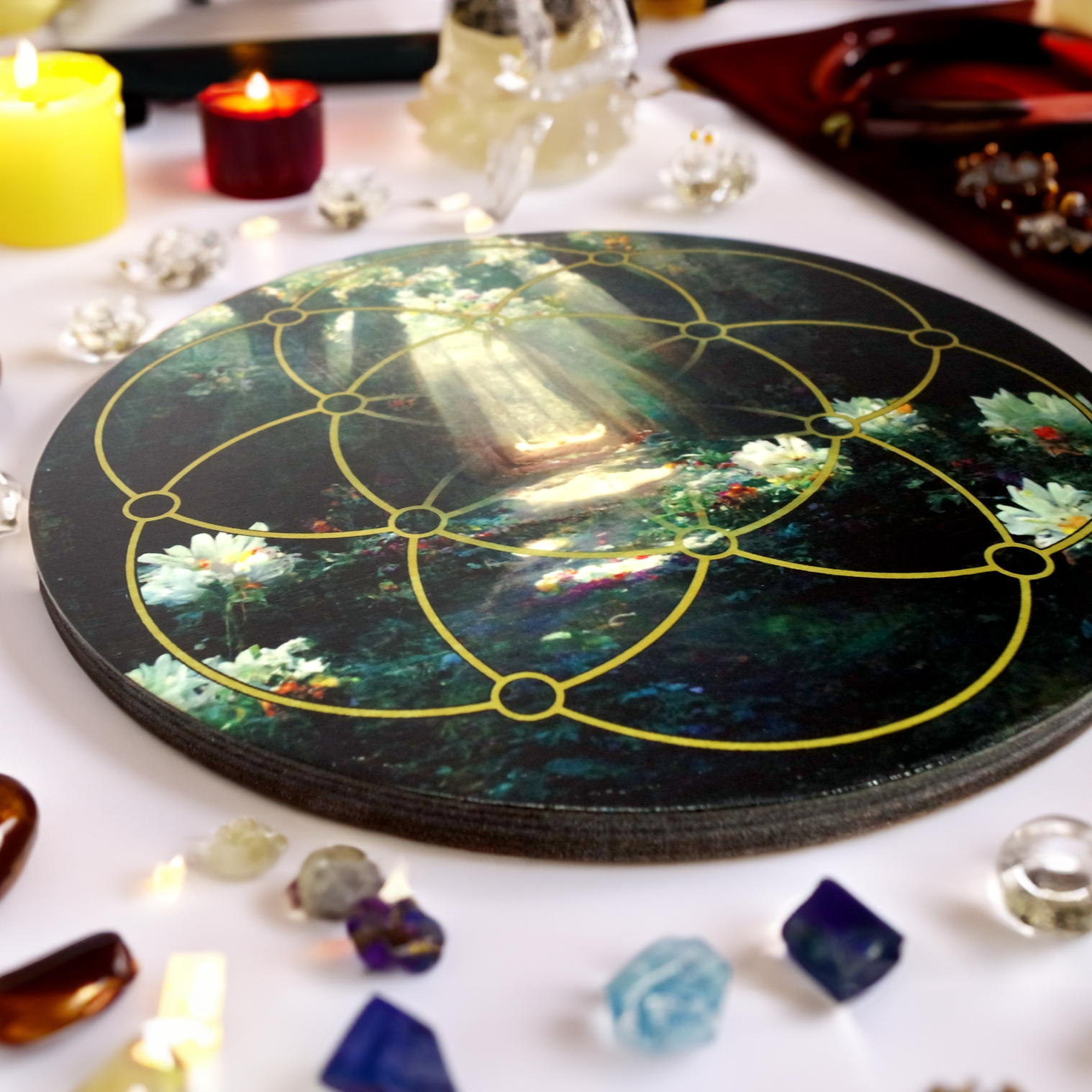 This beautiful and unique board is hand made by us at Inlumined Arts, and ships directly from our USA based studio. Each item is made to order, ensuring that you'll receive a one-of-a-kind piece that is specifically designed to help you in your crystal work.