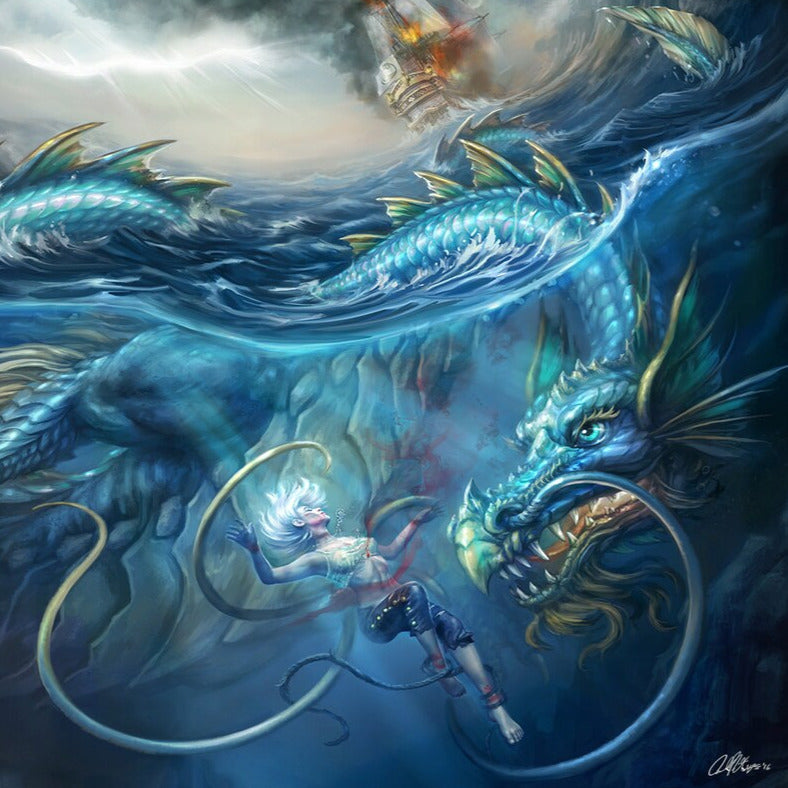 "A Watery Grave" Fantasy Sea Dragon Art Print