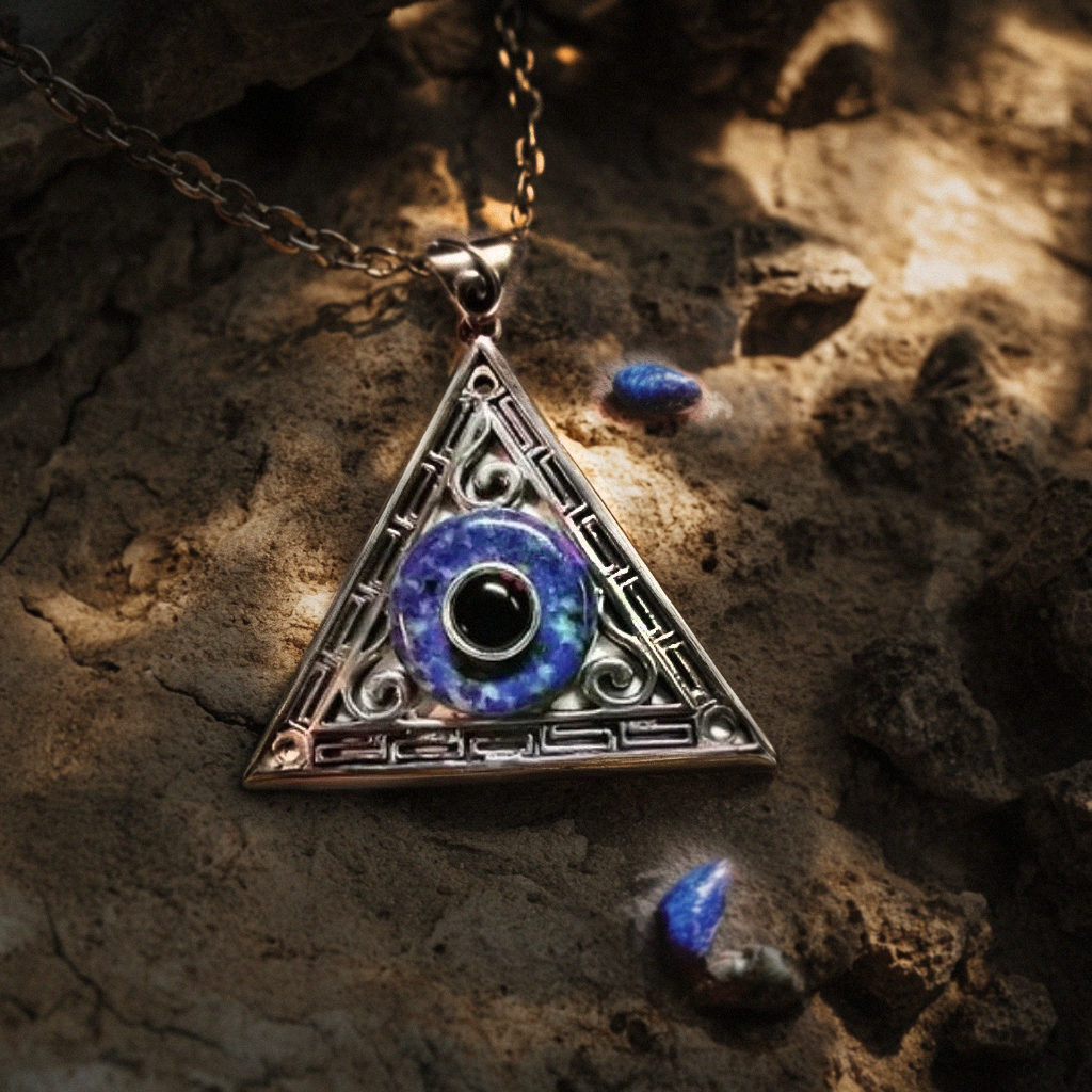 Evil Eye, Sterling Silver Amulet, Greek Pendant with Lapis Lazuli and Onyx