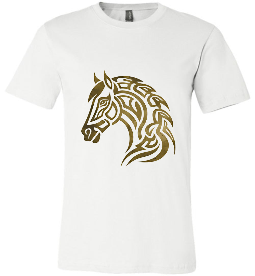 Viking Norse Knotwork Horse Graphic T-Shirt – Gold Design