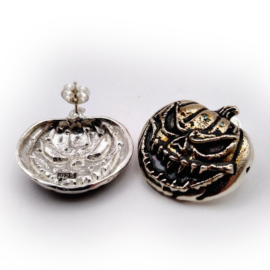 Handmade Sterling Silver Evil Pumpkin Stud Earrings
