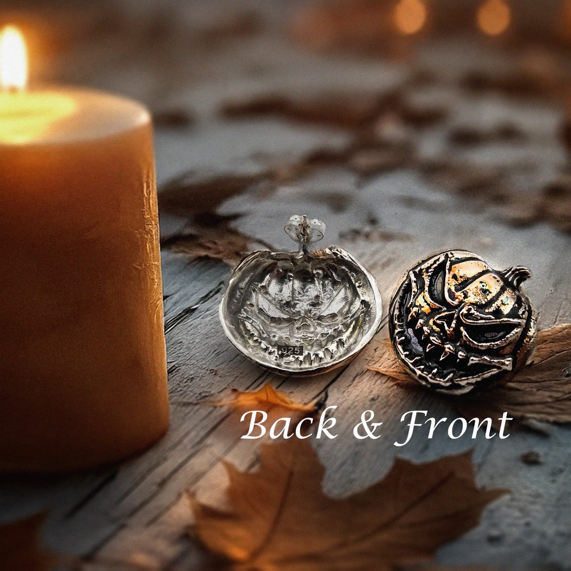 Embrace the spooky season with these striking evil Jack-o-Lantern Pumpkin Earrings from Inlumined Arts. Made from premium .925 sterling silver and crafted by hand in the USA, these Halloween Earrings are perfect for those who love combining eerie and elegant styles. The sinister jack-o-lantern design adds a bold touch to your Halloween look, making these earrings an essential piece for any Halloween jewelry collection.