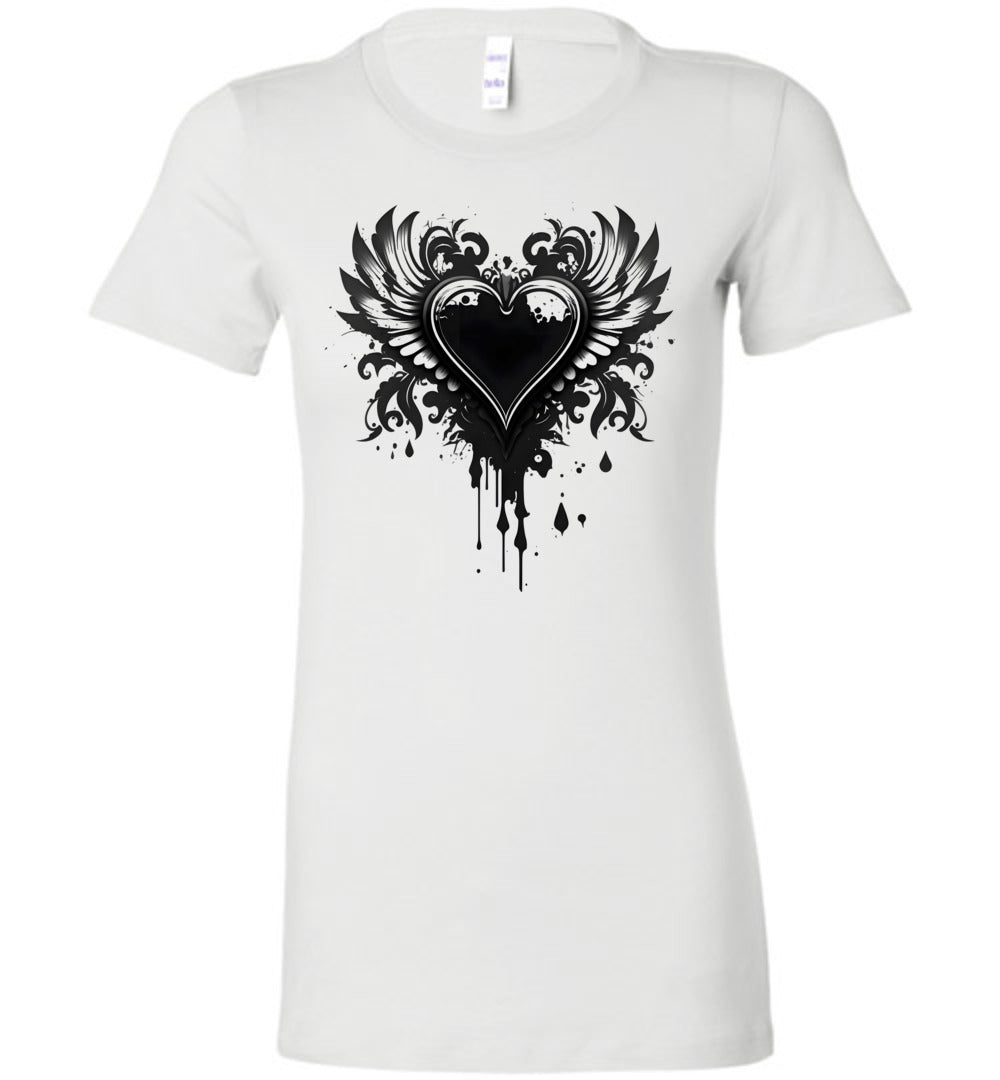 Ladies Fit Gothic Emo Rock and Roll Bleeding Heart Shirt s-2xl