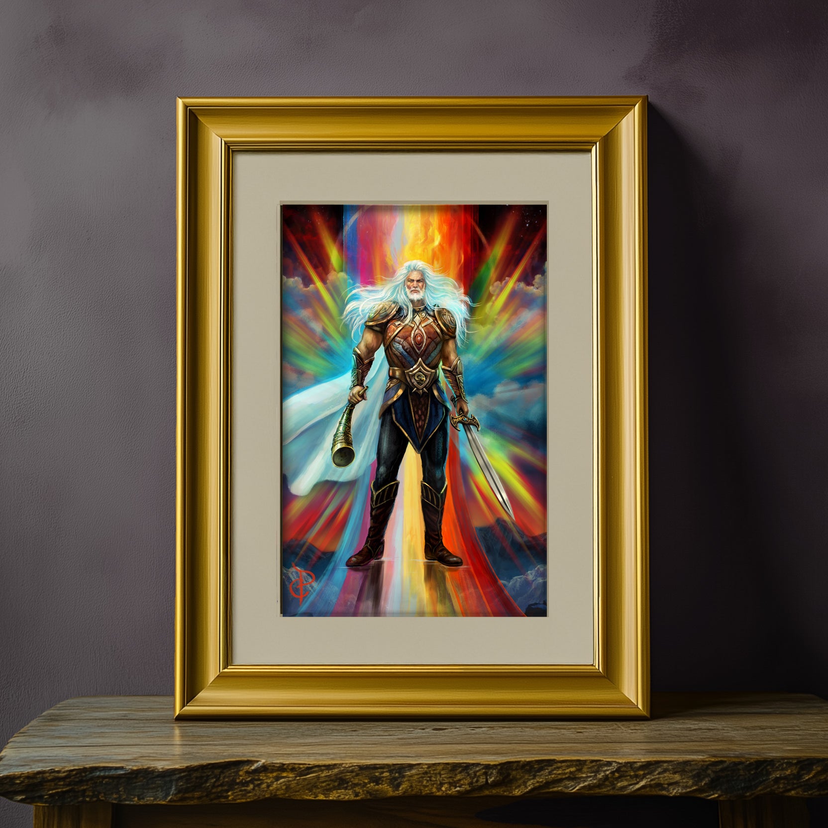 Honor the eternal guardian of Asgard with this breathtaking portrayal of Heimdall, a must-have for any Norse mythology enthusiast or art collector.