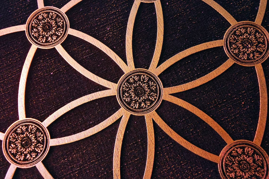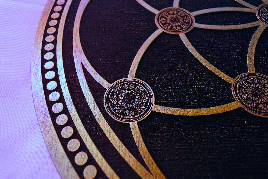 Seed of Life, Flower of Life, Gold Crystal Grid Altar Board
