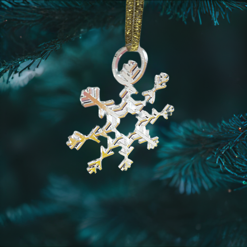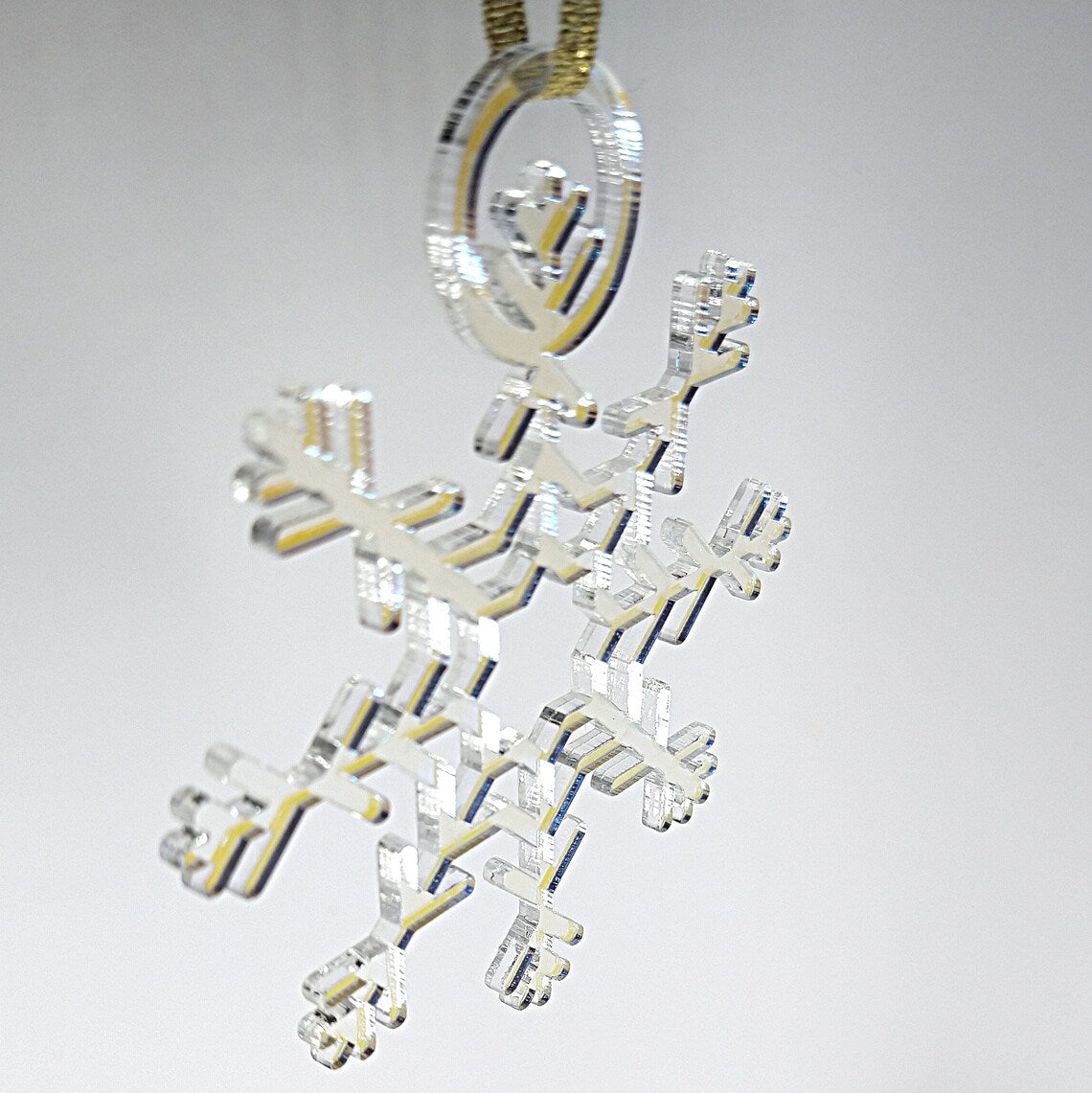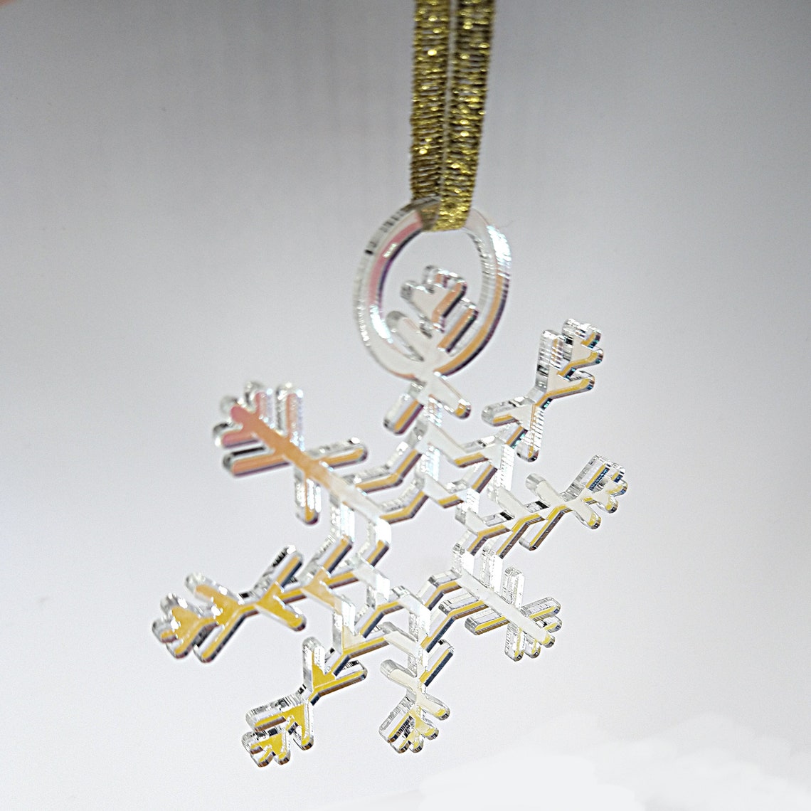 Snowflake Winter holiday ornament, yule or christmas, gold , Iridscent or Gold acrylic