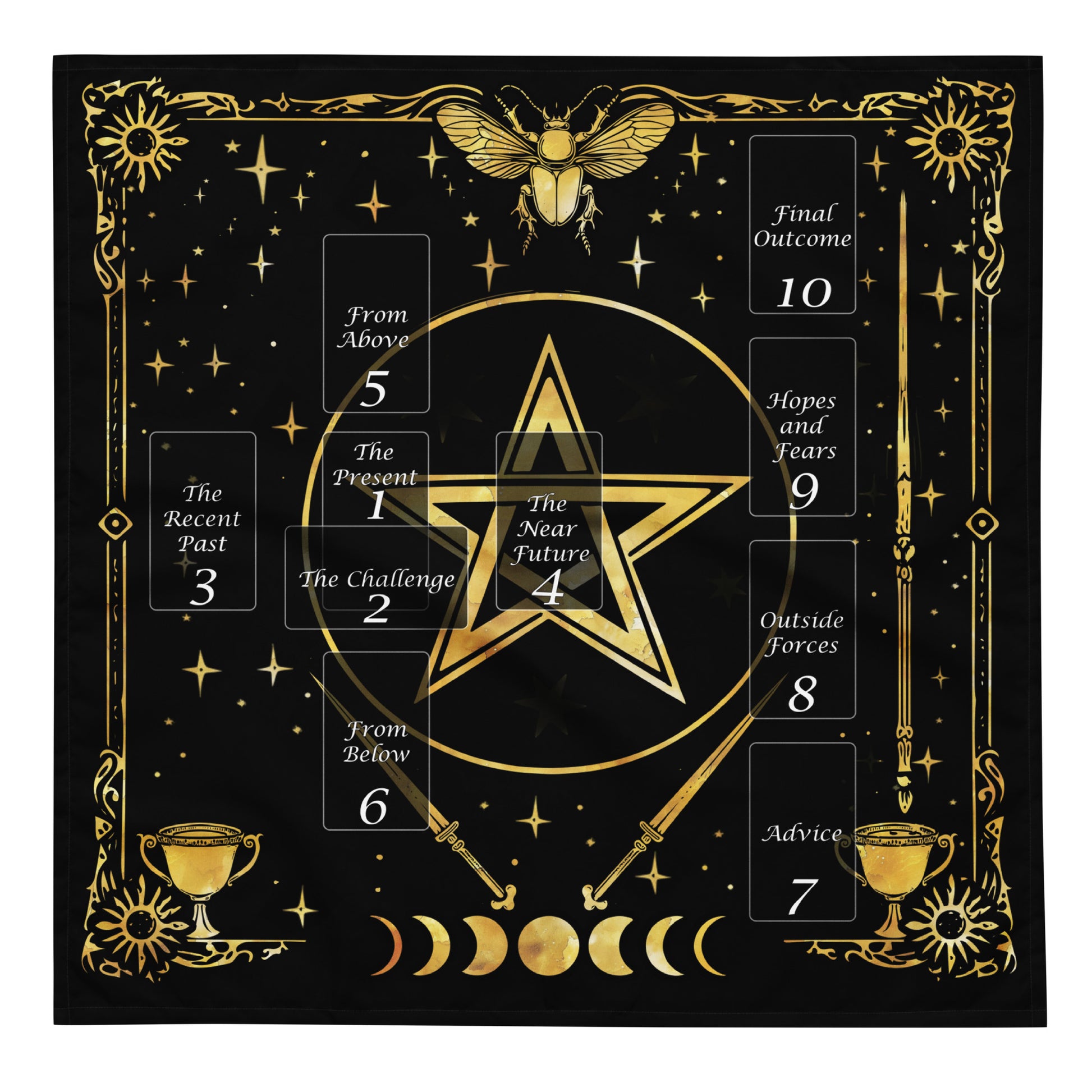 Tarot Spread Cloth with Celtic Cross meanings, Tarot accessory Reading Cloth, Beginner Tarot Altar Cloth
