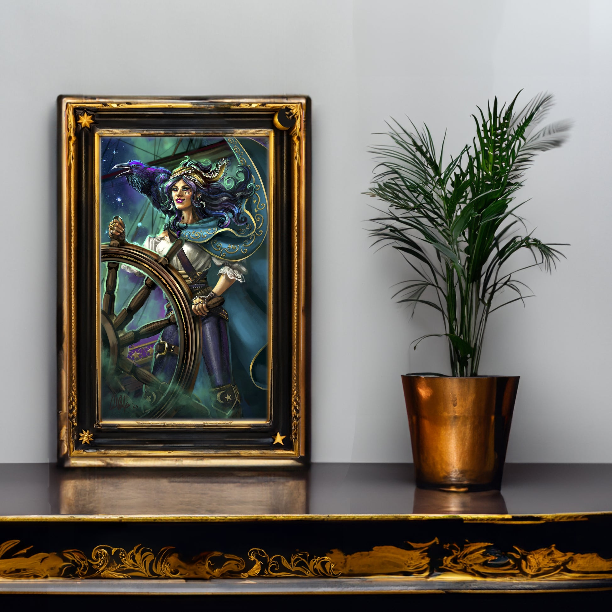 The Fool Tarot Card: The Fool card in the tarot deck embarks on a journey of innocence, discovery, and potential. Often numbered as 0, it stands at the beginning, representing a clean slate or a person on the brink of a new adventure. The Fool is both curious and carefree, stepping into the unknown with a sense of wonder and optimism. She carries a small bag, symbolizing the few belongings or lessons she's taking with her, while the raven at on her shoulders can represent loyalty and protection. With the vast sky around her and the unpredictable path ahead, The Fool reminds us of the limitless possibilities that lie before us and the importance of embracing life's journey with an open heart and mind. Whether seen as a moment of spontaneous decision or the start of a significant life change, The Fool embodies the spirit of exploration and the faith that the universe will guide the way.