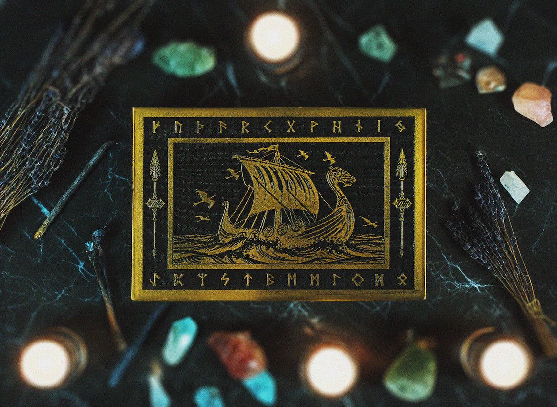Boxed Wooden Rune Pagan Gift set, Norse Viking Ship