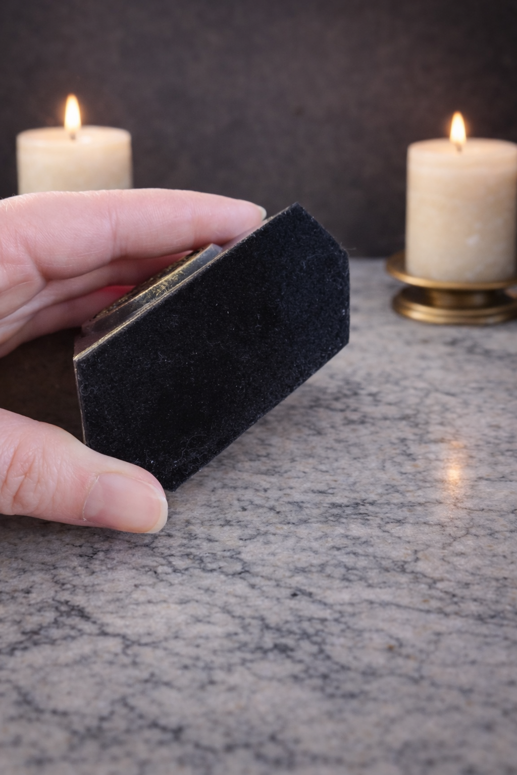 Features: Velvet-lined base to protect altar surfaces and shelves